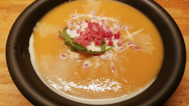 Sopa cremosa, aterciopelada y con topping crujiente. Para 4 personas. Lista en 35 minutos.