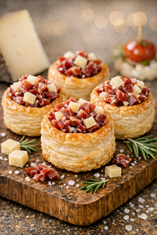 Rellena hojaldre con virutas y queso manchego curado. Hornea 10 minutos y consigue unos bocaditos adictivos.